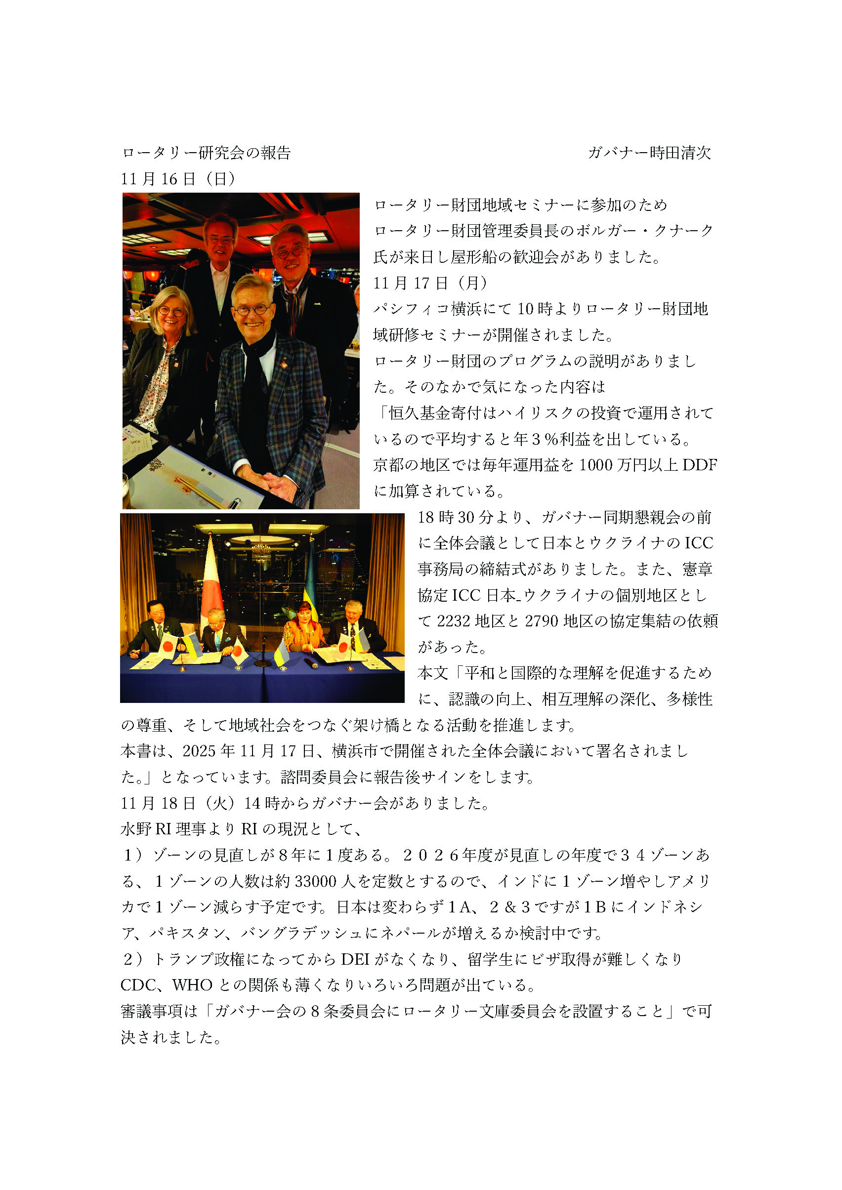 ところで、行動計画にばかり気にかけロータリー目的を忘れがちになります。